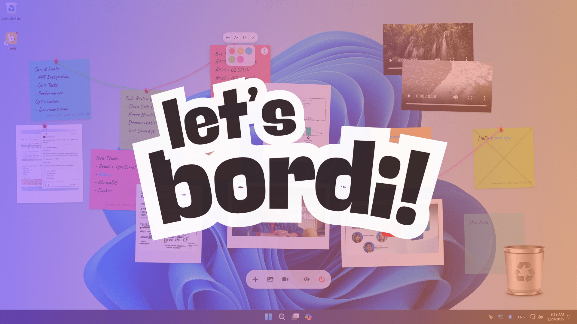 Masaüstünüzü yaratıcı bir çalışma alanına dönüştürün. Notlarınızı ve medya dosyalarınızı özgürce düzenleyin.